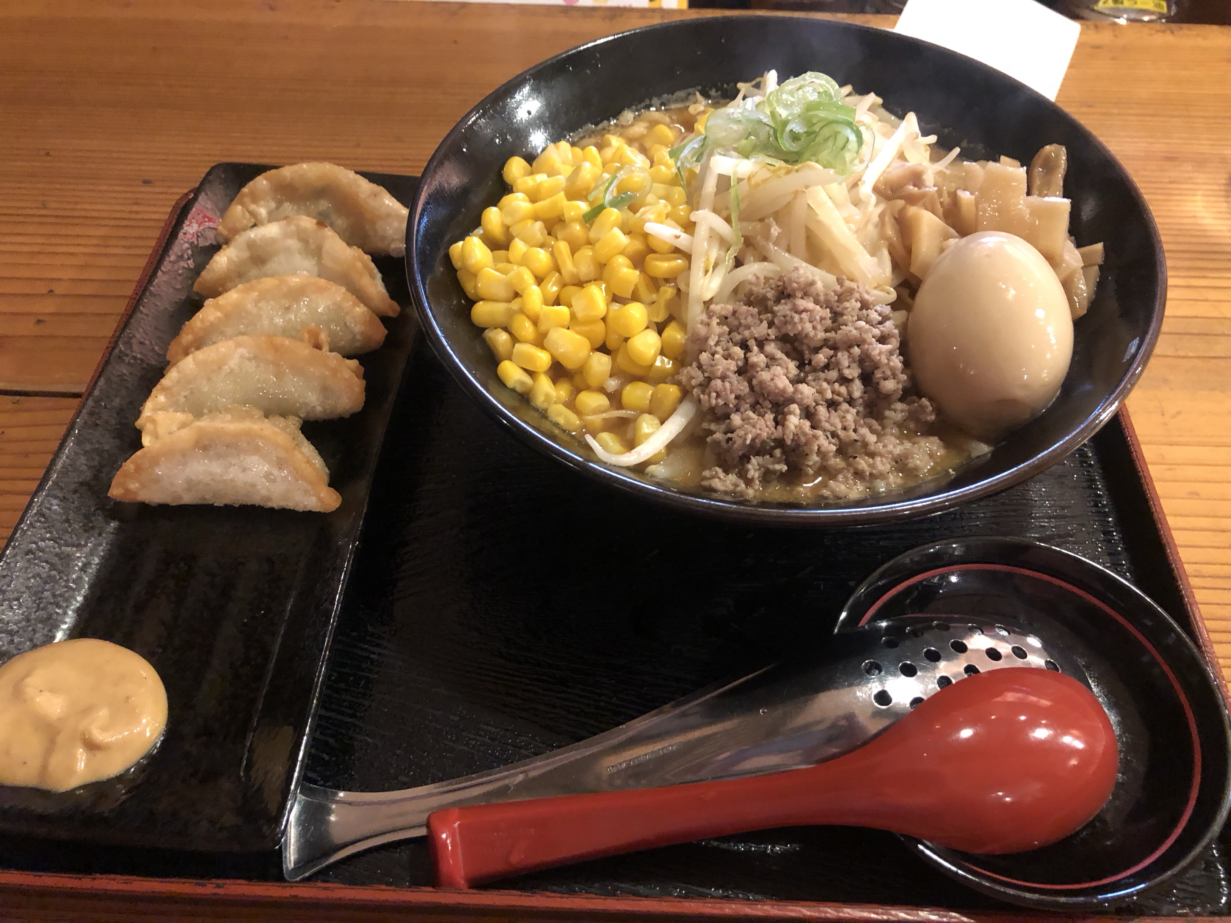 仕事終わりでお腹も空いていたので、ついつい餃子も注文♪こちらのお店は揚げ餃子しかないのですが、揚げ餃子にオリジナルのお味噌をつけて食べるというのがこちらのお店のスタイル。しかし、このお味噌がなかなか美味しいのでございます♪